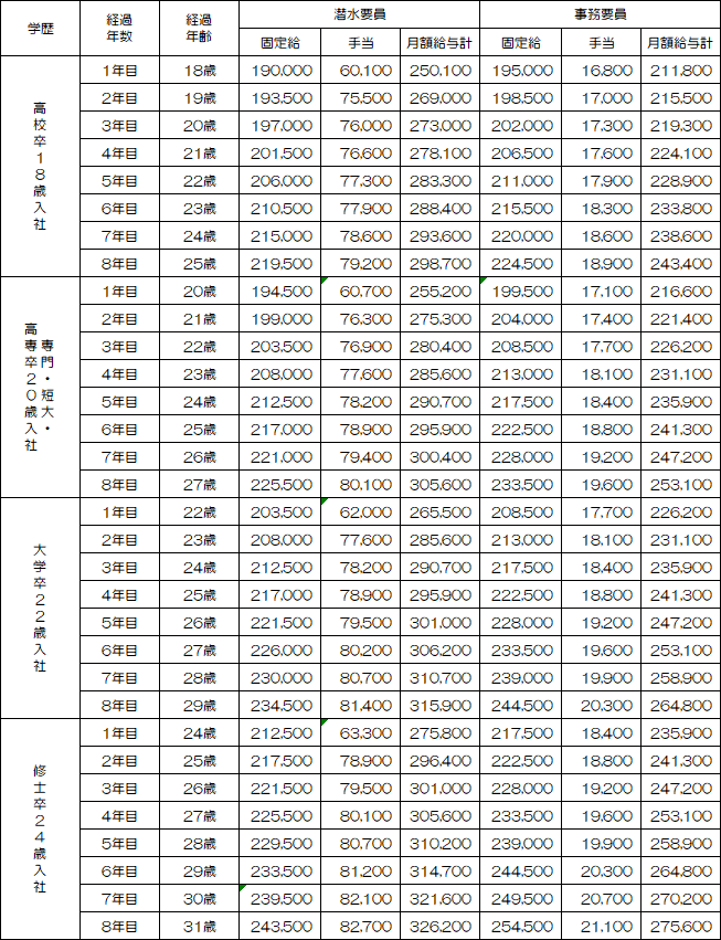 当社規定によります(年齢・学歴・職種によって異なります)